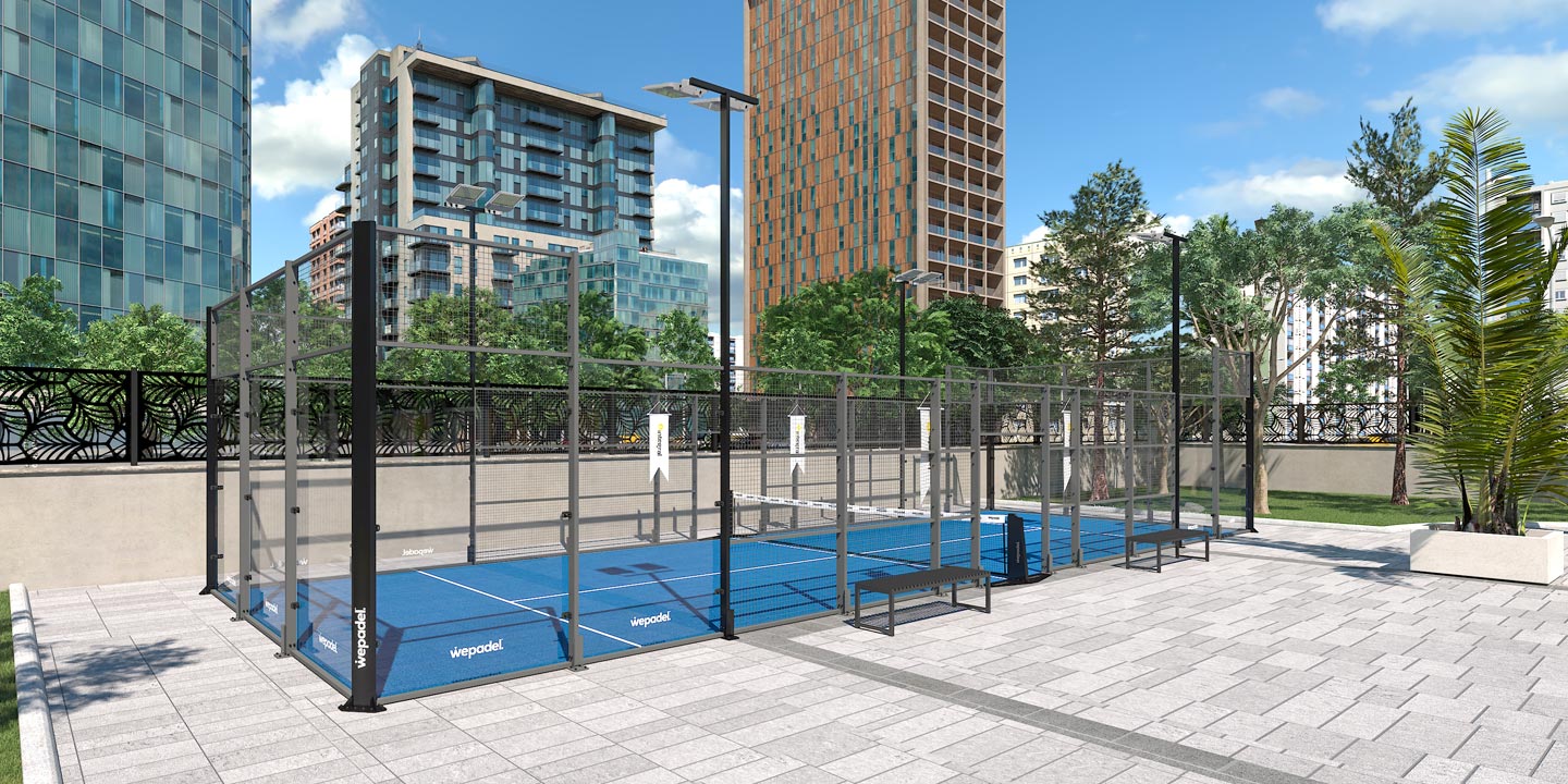 ملعب البادل **Origin Single** هو نموذج ملعب مُعَد وفقًا لقوانين اللعبة ومعايير الـ FIP، حيث يتم استخدام تطبيقات مثل العشب الصناعي، الهيكل الفولاذي، الإضاءة وطلاء السطح الفولاذي. وهو مناسب غالبًا للمساحات المفتوحة. يتم تنفيذ أعمال بنية تحتية بأبعاد 40×50 سم وتطبيق كمرات خرسانية على مساحة 6×20 متر، كما يتم إنارة المنطقة بـ 8 كشافات LED وتغطيتها بالعشب الصناعي.